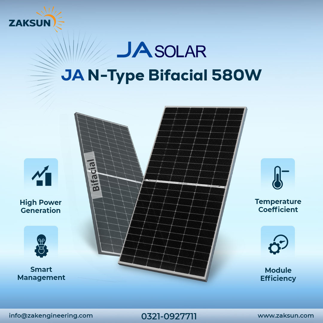 The JA N type Bifacial 580W is focused on delivering high performance and sustainable design principles, suitable for residential & large scale commercial solar systems alike. This product guarantees its users with the highest capacity development of energy 580W even under minimum light conditions. Powered by N Type Bifacial, it delivers exceptional energy conversion for maximum utilization of the sunlight that reaches you. It is also built to last in extreme temperatures, offering long term resilience and value added performance. Simple to install and easy to integrate into any existing solar system, it works great on both new installations or system expansion. Whether you're using it for on-grid or off-grid applications, the JA N type Bifacial 580W helps to lower electricity costs and also helps in reducing environmental pollution. Featuring an efficiency of (21.9-22.6) and a sturdy construction, it offers users who are looking for stability and energy-resilience to do so in their choice to greenify.
