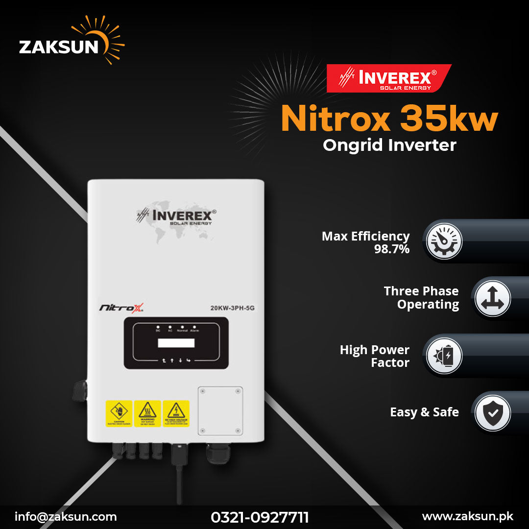 The Nitrox 35Kw On-Grid Inverter is engineered for efficient solar energy conversion, seamlessly integrating with the grid to optimize power usage. Designed for high-capacity applications, it ensures reliable performance and maximizes energy yield. Its advanced technology supports stable operation, making it ideal for commercial and industrial solar installations seeking expert-level energy management.
