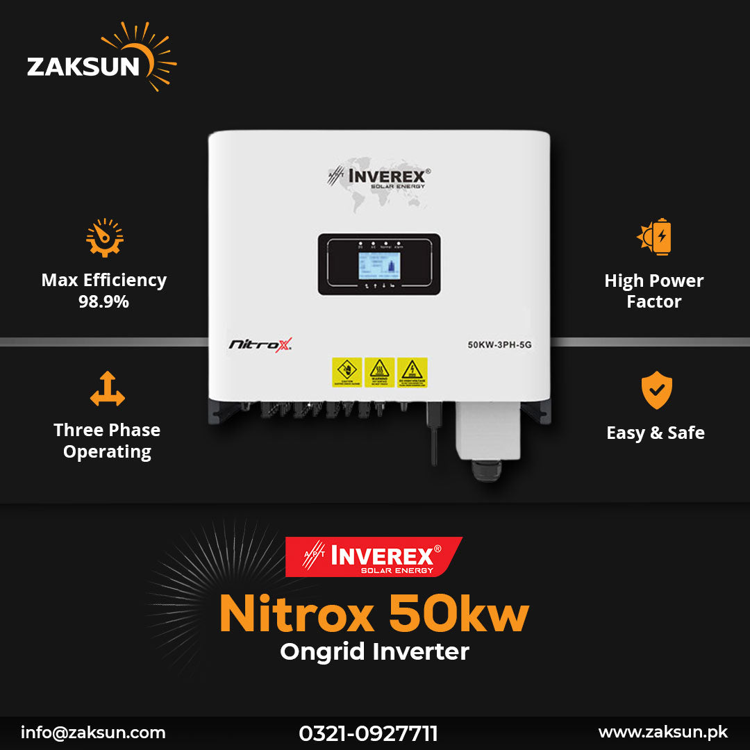 The Nitrox 50Kw On-Grid Inverter is engineered for efficient energy conversion in large-scale solar power systems. Designed to seamlessly integrate with the electrical grid, it maximizes solar energy utilization while ensuring stable power output. Its robust build and advanced technology provide reliable performance, making it ideal for commercial and industrial applications seeking to optimize renewable energy investments.